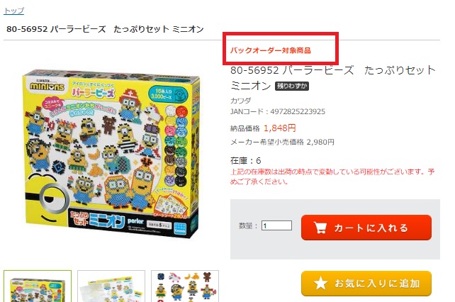 ご発注確定の時点でご発注数が弊社在庫を上回っている場合、「バックオーダー」対象商品として、メーカー取り寄せ対応をいたします。