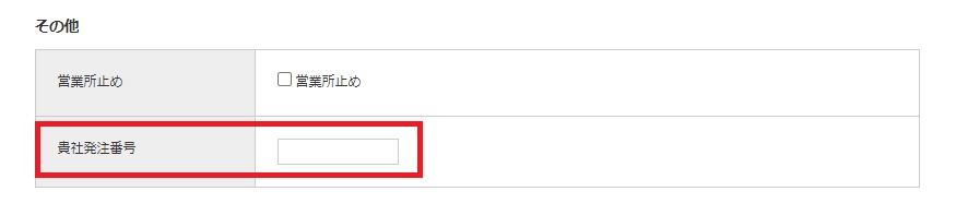 ご発注商品をカートへ投入後、注文情報入力ページで「貴社独自番号」欄に貴社で使用する発注番号を入力してください。