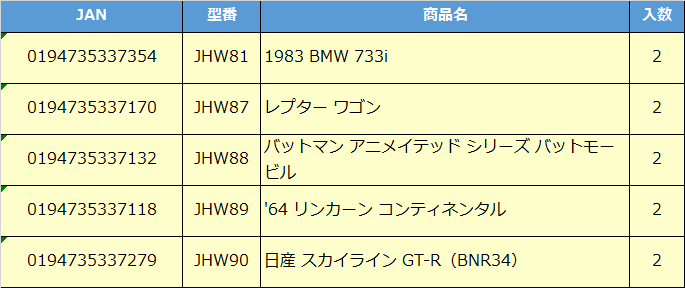 映画やゲームなどで人気の車種を忠実に再現したポップカルチャーシリーズ。『ストレンジャーシングス』に登場する『1983 BMW 733i』が新金型で登場するほか、『バットマン アニメイテッド シリーズ バットモービル』や、『日産 スカイライン GT-R(BNR34)』などアイコニックな人気車種が5台登場。